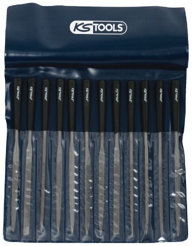 Ⓓ KS Tools 140.3050 Jeu de 12 limes aiguilles avec manches en plastique et étui